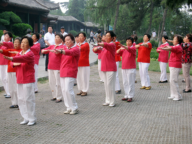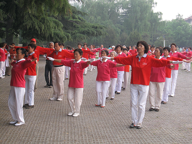晨練居民加入健身操隊伍