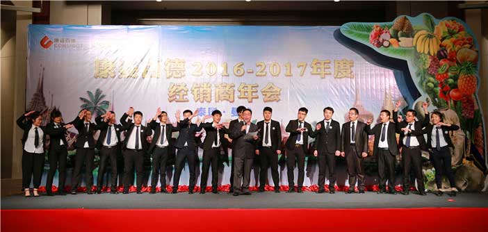 年會伊始,康姿百德董事長李銀祥發表致辭。他表示“2016年是公司高速騰飛的一年,銷售業績再創輝煌。感謝全國各地經銷商朋友們的支持與付出,希望2017年大家能夠不忘初心,繼續奮進,為提升客戶服務質量而努力,為健康事業的宏偉發展貢獻自己的一份力量!”