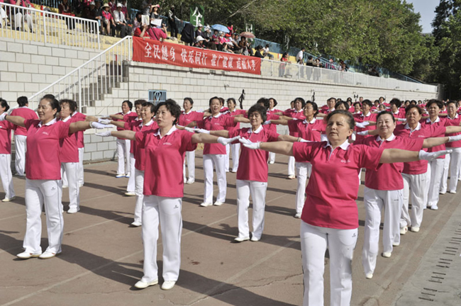 5月19日上午,新疆老年協會第二屆“新可緣杯”康姿百德健身操比賽在新疆教育學院舉行,來自伊犁州、巴州、克拉瑪依等20支代表隊的800多名中老年健身愛好者,同聚烏魯木齊,一展健身風采。我公司董事長李銀祥親赴現場,為邀請賽開幕式致辭并為獲勝者頒獎。 康姿百德健身操自2012年5月開始在新疆推廣,僅一年的時間,在全疆就有20多個地州市縣6萬人參加跳舞健身。康姿百德健身操簡單易學,音樂優美,吸引著更多的中老年朋友參加到健身活動中,掀起了新一輪的康姿百德健身熱潮。
