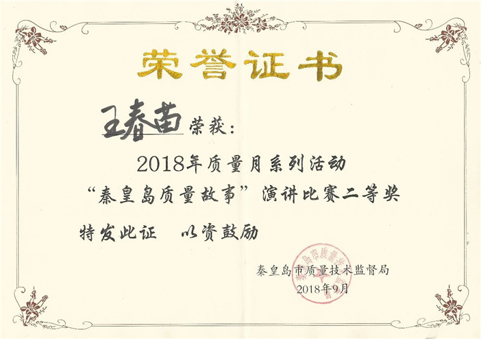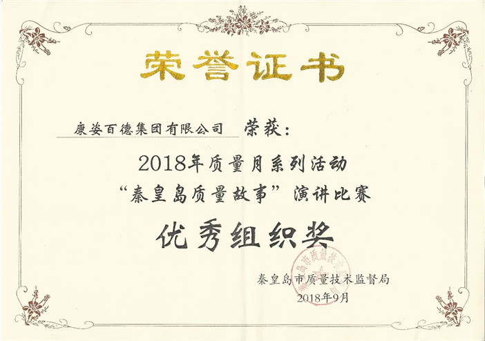 2018年9月26日,“秦皇島質量故事”演講比賽總決賽隆重召開。為響應國家2018年質量月活動,康姿百德積極參與,并榮獲二等獎及優秀組織獎。