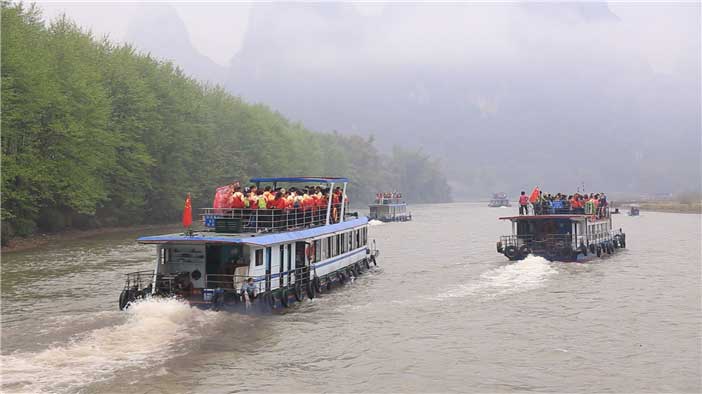 部分健身愛好者在漓江上乘船觀看風景