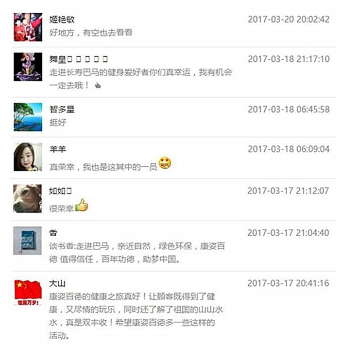 此次“走進(jìn)長(zhǎng)壽巴馬 共譜健康人生”健康之旅活動(dòng)反響熱烈,得到了健身愛(ài)好者的廣泛好評(píng)。自前幾篇報(bào)道巴馬健康之旅的文章發(fā)出后,許多健身愛(ài)好者都通過(guò)在微信公眾平臺(tái)文章下方留言評(píng)論的方式表達(dá)了自己的體會(huì)和感受。