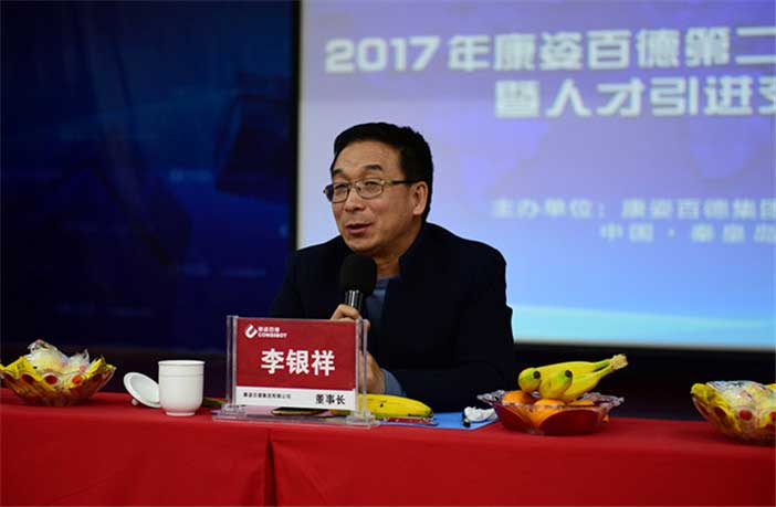 康姿百德集團(tuán)董事長李銀祥在交流會上發(fā)言