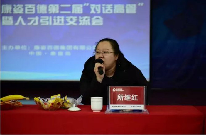 康姿百德集團(tuán)人力資源中心總經(jīng)理劉婷在交流會上發(fā)言