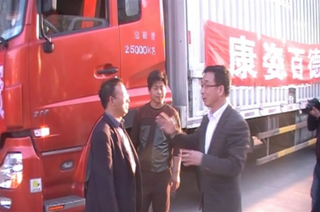 25日上午9點,物資車到達(dá)石家莊。石家莊康姿百德總代理李志華,代表新華區(qū)、裕華區(qū)、橋西區(qū)、橋東區(qū)、長安區(qū)、開發(fā)區(qū)、辛集市、平山縣、藁城縣、正定縣等地的代理商將愛心物資裝上貨車