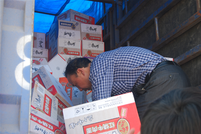 25日凌晨三點,康姿百德救災(zāi)物資車隊到達(dá)北京。房山康姿百德總代理李三喜,代表延慶、通州、門頭溝、密云、昌平、景山、唐山、延吉、廊坊以及華夏經(jīng)典等地的代理商將愛心物資裝上貨車