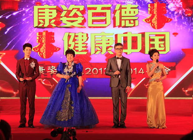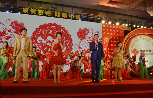 中午1時許,從全國各地趕來參加年會的經銷商蜂擁而至。會場門前,由公司督導師組成的禮儀隊,身著禮服,面帶微笑,列隊歡迎大家的到來,一句句“過年好”、“歡迎您回家”、“您辛苦了”的問候聲不絕于耳。會場內,由公司員工自己搭建的舞臺燈光閃爍,絢麗多彩,懸掛于舞臺兩側的大紅燈籠顯得格外耀眼;舞臺背景的LED屏幕上,“康姿百德、健康中國”、“康姿百德2013-2014年會”等字幕交替顯示;偌大的大廳內,40張餐桌上擺滿了水果、瓜子、花生、飲料……。大家邊吃邊聊,噓寒問暖,徜徉在幸福和愉悅之中,盡情享受著家一般的親切和溫暖。