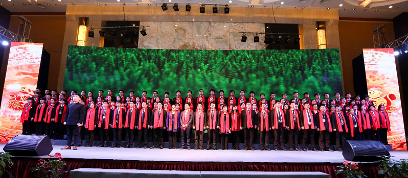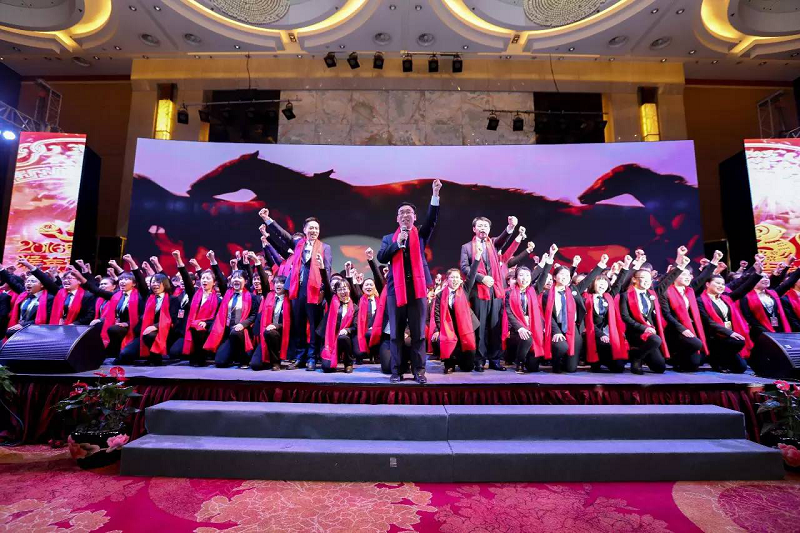 公司領導為所有參加年會的員工和經銷商帶上紅圍巾,送上最真摯的祝福。