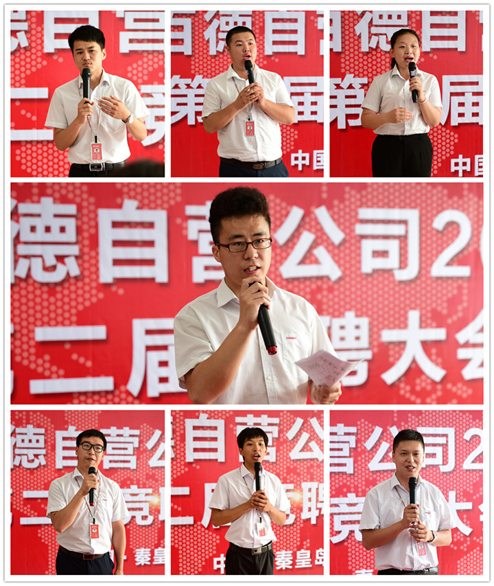 康姿百德財務管理中心總監王超、信息管理中心總監劉文達在競聘大會上發言