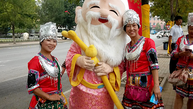 “和壽星合影就會健康長壽哦~”——顧客與壽星卡通精靈親密合照
