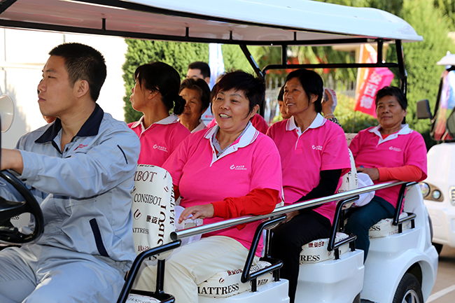 “第一次坐車參觀生產線,工廠一定很正規”——顧客乘坐參觀車參觀康姿百德制造中心